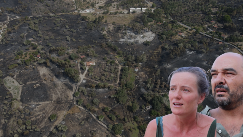 Portugal wordt al maanden getergd door verschrikkelijke bosbranden die totaal uit de hand lopen en niet meer kunnen worden gestopt. Alleen al in augustus gingen 278.000 hectare bos in vlammen op. Eind juli, de 28ste om precies te zijn, begon er zo’n vuur op een aantal kilometer afstand van onze boerderij. We waren op dat moment met z’n zessen thuis: vier volwassenen (ikzelf, m’n man Filipe, z’n broer Renato en hun moeder) en onze twee dochters (Ami 9 en Fia 6). We wisten maar net te ontkomen aan de vuurzee. Onze regeneratieve boerderij niet.