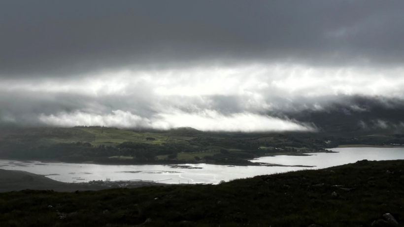 Een half uur later parkeerde ik op een vlak stuk grind vlak achter een passingplace. Prima te doen. Ik schakelde de motor uit, schonk mezelf een glas wijn in. In de diepte onder me een Loch, ik kon nog net de huizen aan de overkant ontwaren, minuscule witte zeiltjes dobberden op het blauwe water. Recht voor me uit kronkelde de weg die ik had afgelegd, tussen groen beklede en grillig gevormde rotsen, tot die verdween achter een bergtop, om vlak achter me weer te verschijnen.