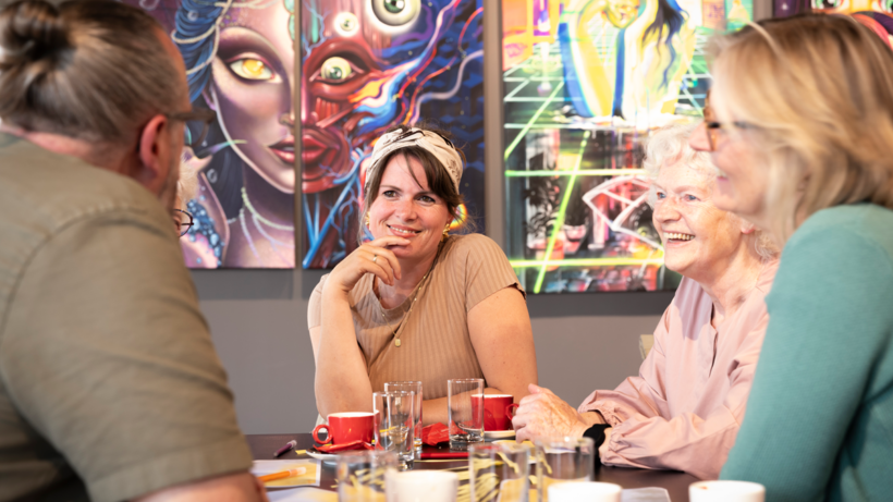 Ik probeer een sfeer van openheid te creëren waar iedereen mag zijn wie die is. Een wezenlijke voorwaarde voor een goed gesprek is de ruimte die het biedt om je ervaringen te delen. Juist door te delen ontstaat er verbinding. Zo is er spontaan een nieuwe groep ontstaan, door deelnemers zelf georganiseerd en gedragen. Ze noemen het Koffie met Zin. Eén keer per maand spreken ze af om samen koffie te drinken of een ijsje te eten. Ze hebben een eigen appgroep en sommigen zoeken elkaar tussendoor ook op.