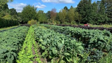 Als ik eind van de middag arriveer bij De Coöperij vult een groep vrijwilligers kratten met felgekleurde pompoenen, paarse groenten en felgroene bladgewassen. De lege mokken en theekannen op de picknicktafel zijn sporen van een dag hard werken. Marieke vertelt: “Het uitgangspunt van De Coöperij is gezonde voeding te verbouwen. Dat is gezonder voor mensen, de algehele omgeving en de bodem. En daarmee willen we bijdragen aan een betere wereld. Het levert een prachtige leefomgeving op voor mensen, dieren, eigenlijk alle organismen. Verder gebruiken we geen bestrijdingsmiddelen en is alles echt handwerk, we gebruiken zo min mogelijk machines – daarmee hebben we ook weer minder uitstoot.”